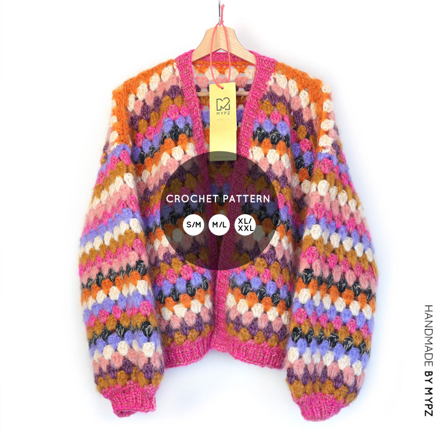 Crochet pattern - MYPZ short Mohair Granny stripes cardigan Rosé (ENG-NL)