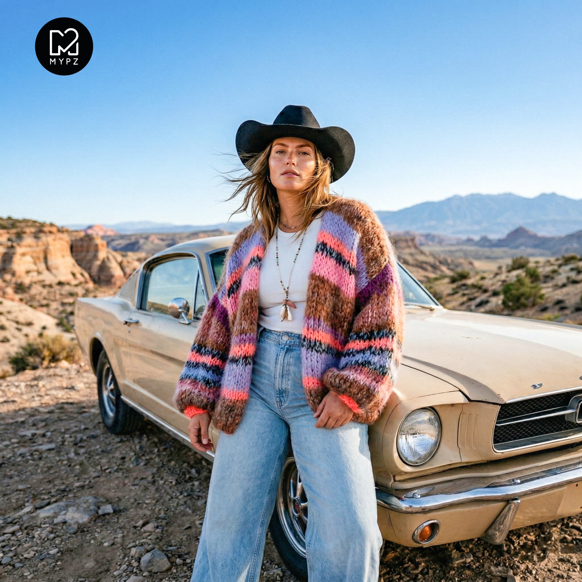 • 1 skein MYPZ Hand-dyed Chunky Kidmohair DK Safari Flirt