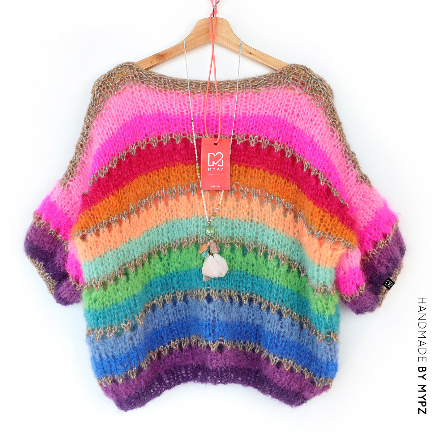 This is a handmade knit made by MYPZ in The Netherlands. Each cardigan or sweater is a unique piece and we take a lot of time and care to create these beautiful products. This beautiful sweater is made of a high quality mohair and does not pill. It is very light, warm and comfortable. These brushed yarns may shed a little but after a while, this will subside.