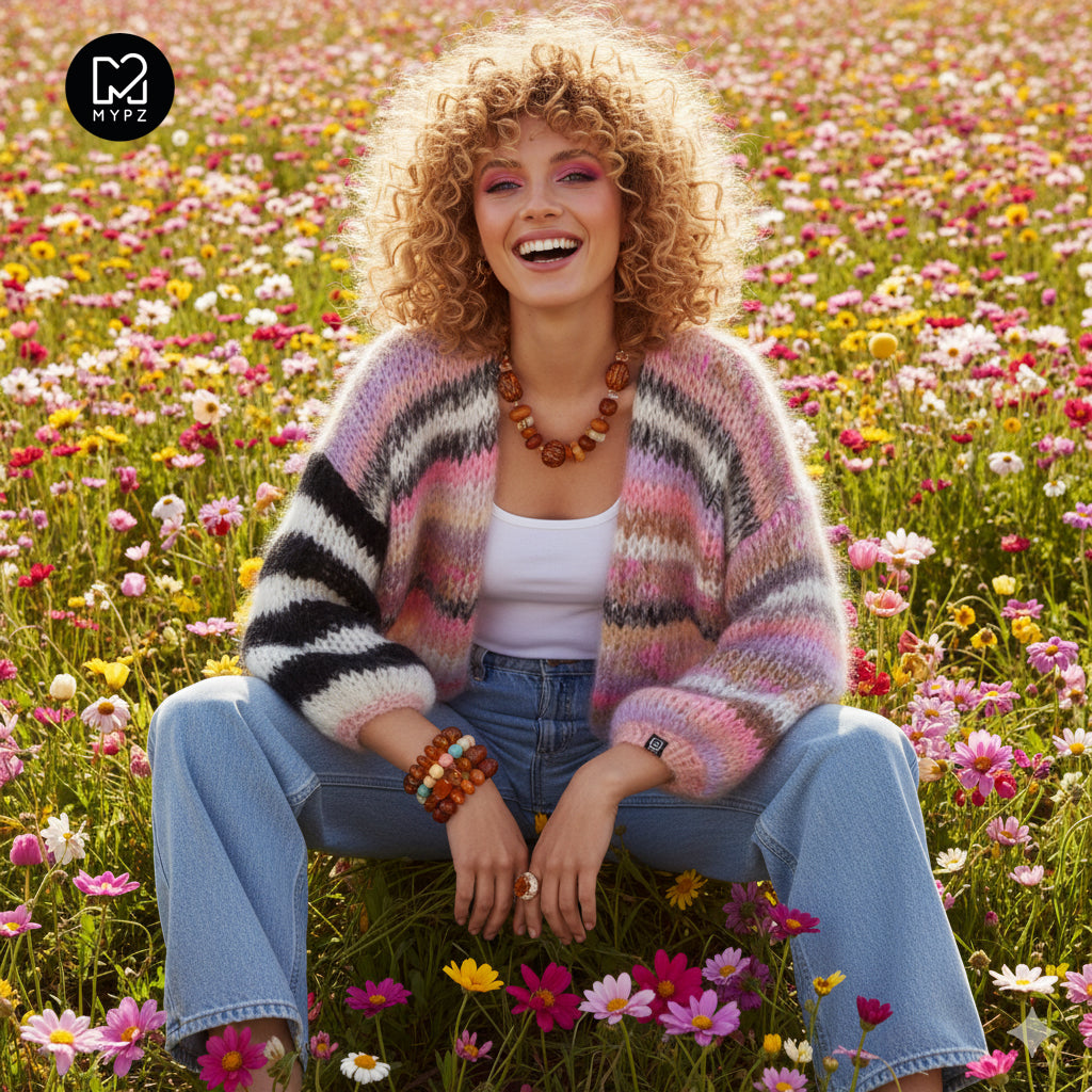 HANDMADE WITH LOVE BY MYPZ | This is a unique handmade luxury mohair cardigan. This beautiful cardigan is made of a high quality kidmohair and does not pill. It is very light, warm and comfortable. These brushed yarns may shed a little but after the first or two washes, this will subside.